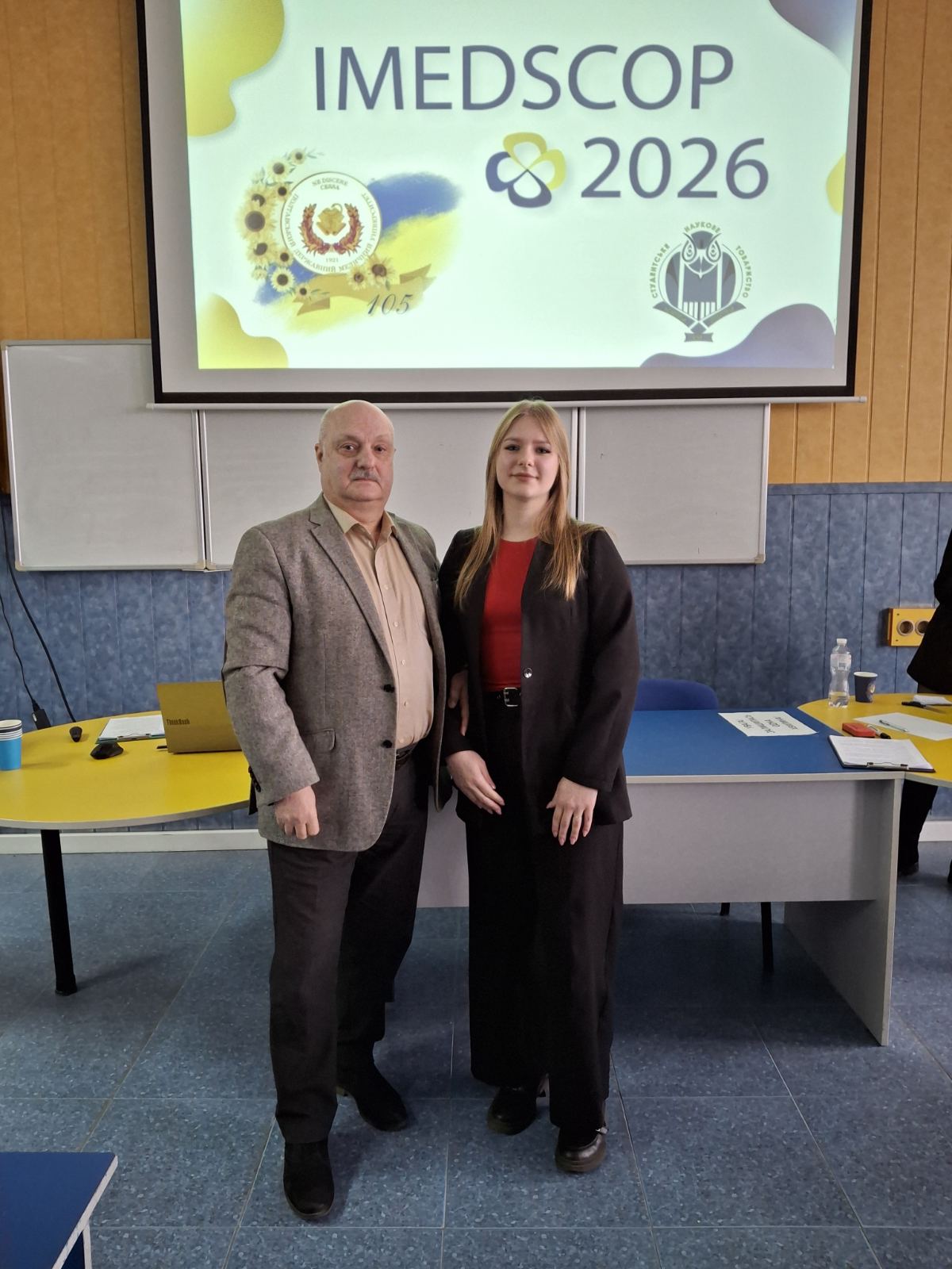 19 березня в Університеті відбулася 7-ма Міжнароднастудентська наукова конференція «International Medical Students Conference in Poltava (IMEDSCOP) 2026". Від кафедри була представлена доповідь на тему: ВДОСКОНАЛЕННЯ АПАРАТІВ ДЛЯ МЕХАНОТЕРАПІЇ ПРИ ДИСФУНКЦІЇ СНЩС ЗАСОБАМИ ШТУЧНОГО ІНТЕЛЕКТУ" (Хлонь Дар`я Валеріївна, Прохоренко Дар`я Олександрівна, Ковтун Катерина Сергіївна). Результати наукового дослідження представила здобувач освіти 9 групи 3 курсу стоматологічного факультету Дар'я Прохоренко